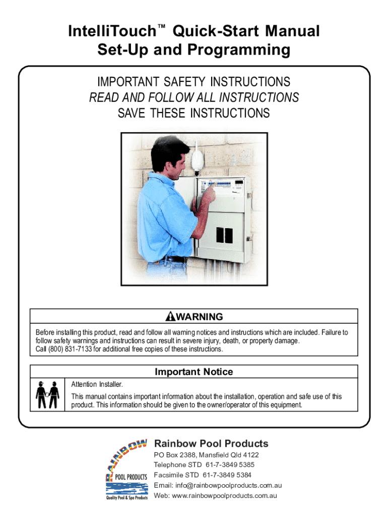 Fill out your intellitouch quick-start manual online with pdfFiller!