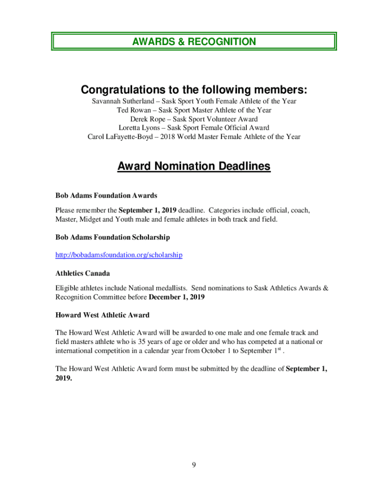 Explore the 2019 Bob Adams Foundation Awards and Scholarships for Saskatchewan athletes. Nominate individuals for various athletic honors and financial support.