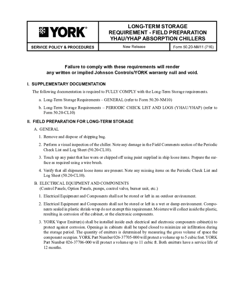 Get the free YHAU/YHAP Absorption Chillers Long Term Storage Requirements - Field Preparation (Fo...
