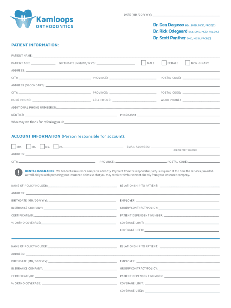 DATE (MM/DD/YYYY):Dr. Dan Dagasso BSc, DMD, MClD, FRCD(C) Dr. Rick Odegaard BSc, DMD, MClD, FRCD(C) Dr. Scott Panther DMD, MClD, FRCD(C) PATIENT INFORMATION: PATIENT NAME: PATIENT AGE:BIRTHDATE (MM/DD/YYYY):MALEFEMALENONBINARYADDRESS: