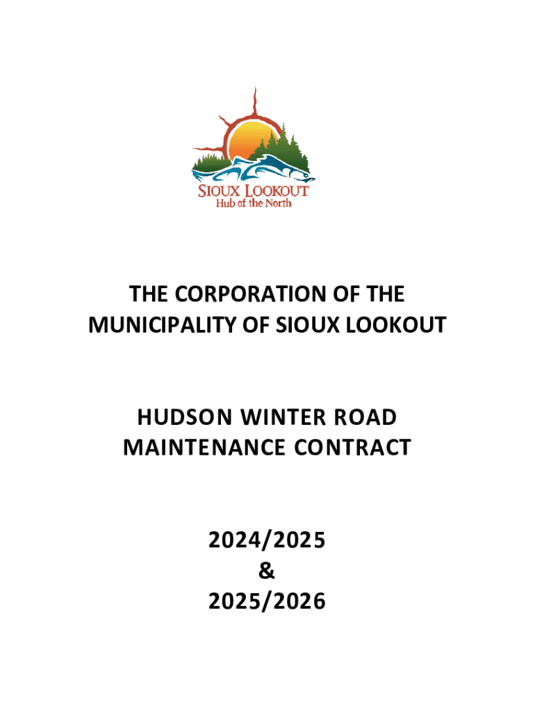 THE CORPORATION OF THE MUNICIPALITY OF SIOUX LOOKOUTHUDSON WINTER ROAD MAINTENANCE CONTRACT2024/2025 & 2025/2026HUDSON ROADS WINTER MAINTENANCE CONTRACT REQUEST FOR PROPOSALS No. R0192024 SECTION