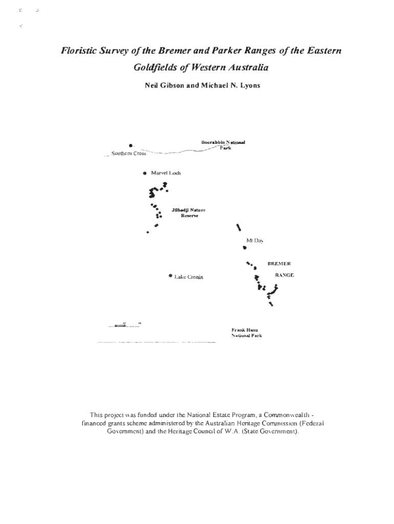 ,\'Floristic Survey of the Bremer and Parker Ranges of the Eastern Goldflelds of Western Australia Neil Gibson and Michael N. Lyons__ 5outhcm Cross l.loorabbin !\'atj.OAal _/y, Marvel LochJilbadjl