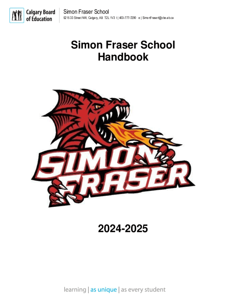 Simon Fraser School 5215 33 Street NW, Calgary, AB T2L 1V3 t | 4037777290 e | SimonFrasert@cbe.ab.caSimon Fraser School Handbook20242025Simon Fraser School 5215 33 Street NW, Calgary, AB T2L 1V3 t