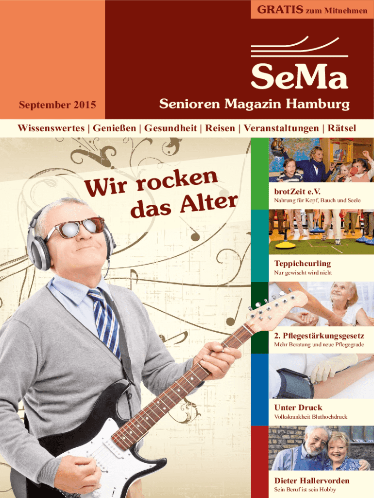 GRATIS sum MitnehmenSeptember 2015Senioren Magazine HamburgWissenswertes | Genieen | Gesundheit | Risen | Veranstaltungen | Itself