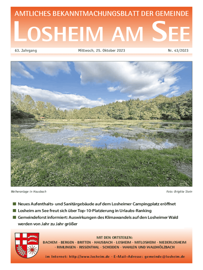 63. JahrgangMittwoch, 25. October 2023Weiheranlage in HausbachNr. 43/2023Foto: Brigitte Stein Neuss Aufenthalts UND Sanitrgebude AUF them Gossamer