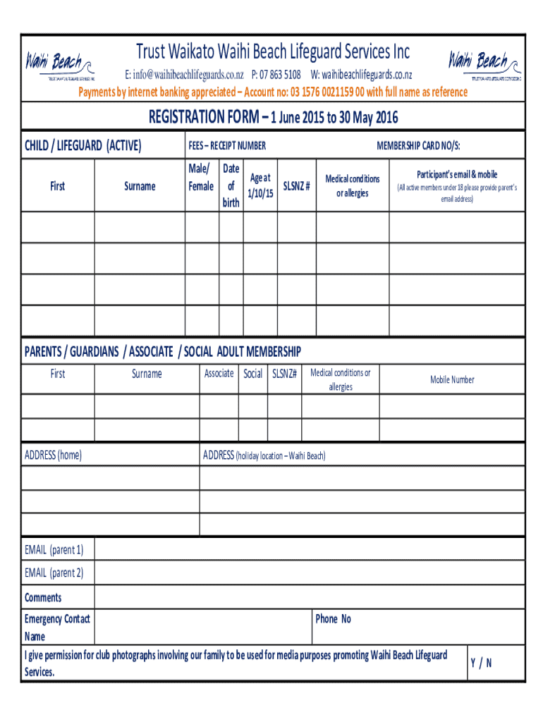 Get the free Waihi Beach Lifeguard Services Registration Form - waihibeachlifeguards co