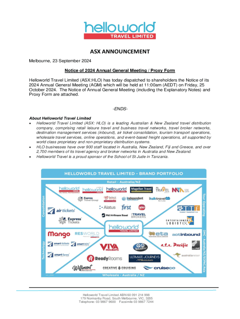 Filling out forms related to Helloworld Travel Limited ASXHLO typically involves following ASX guidelines, submitting necessary documentation through the ASX portal, and ensuring compliance with reporting requirements.