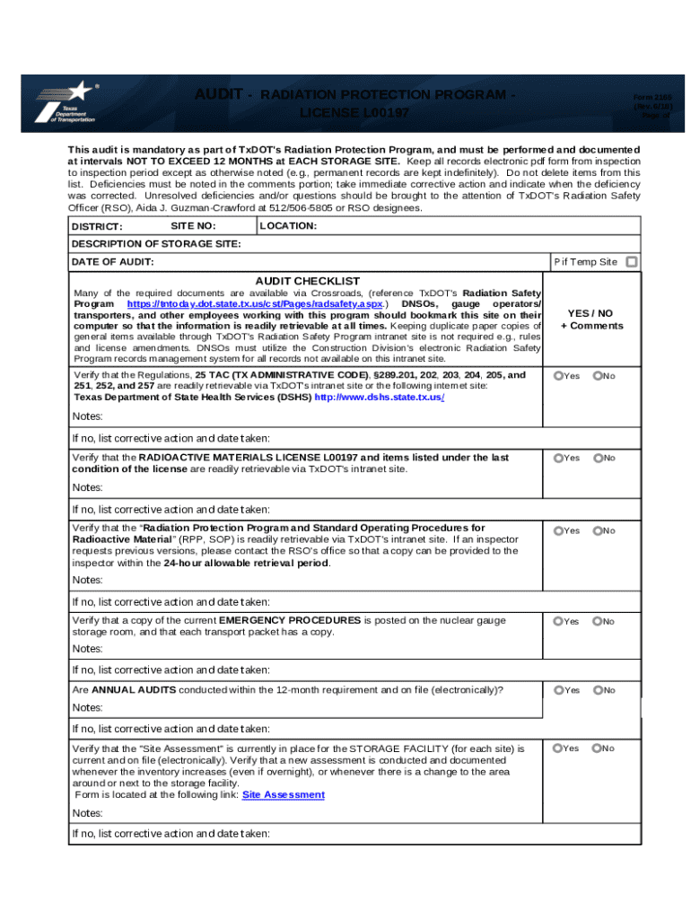 Get the free Audit - Radiation Protection Program - License L00197 - ftp dot state tx