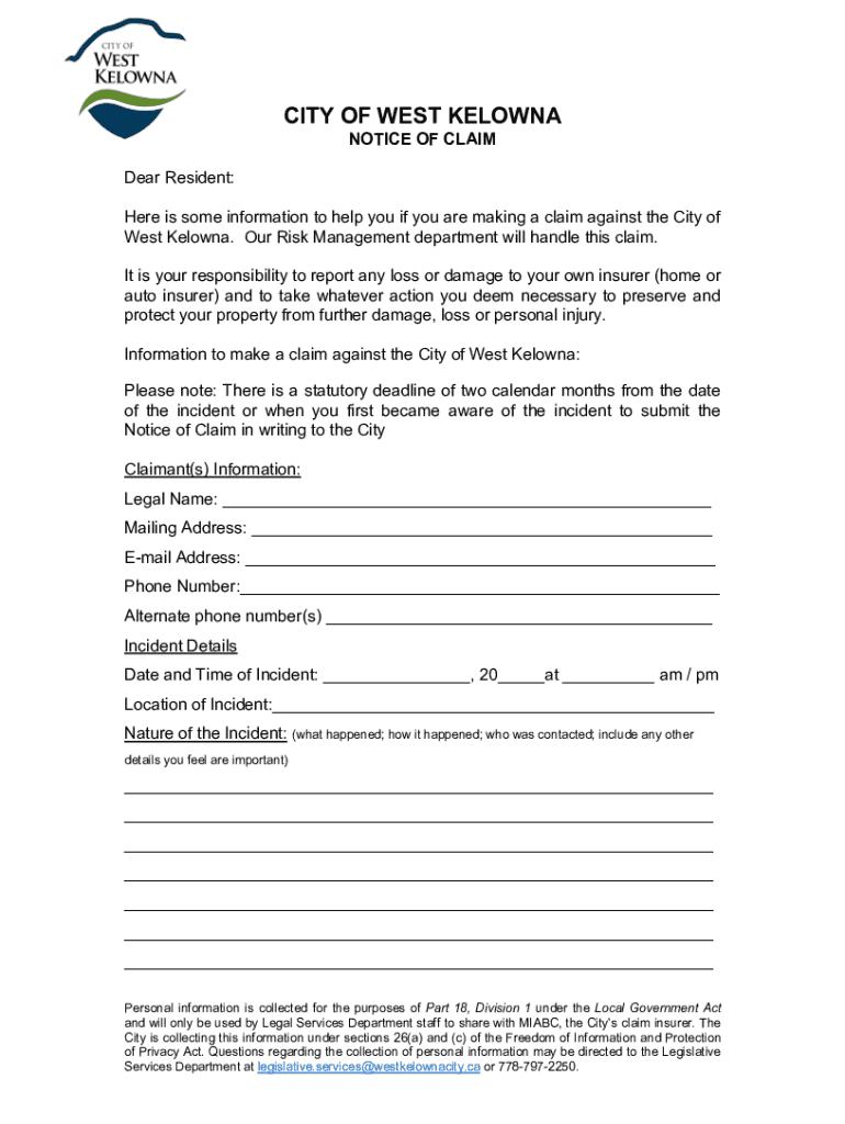 Guidance for residents filing claims against the City of West Kelowna. Follow the necessary steps and meet deadlines for successful claim submission.