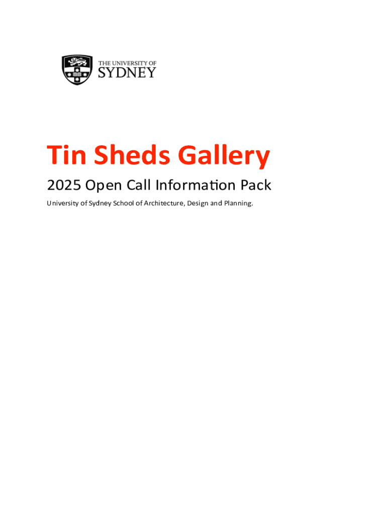 Tin Sheds Gallery 2025 Open Call Informa1on Pack University of Sydney School of Architecture, Design and Planning. About the gallery Tin Sheds Gallery (TSG) is a contemporary exhibition space located