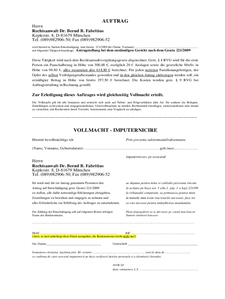 word hermit in Aachen Entschdigung last Beset 221/2009 fr (Name, Surname) ..............................................................................