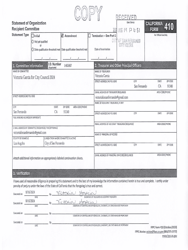 . X f J \'i j YP .Orr PC|/RRN j t. Xi f i i1 ^ statement of Organization Recipient Committee statement Type IPI Initial * IDATE StampICALIFORNI^^v7n?. /jug n RJ 4.51t. . For Official Use Only Termination