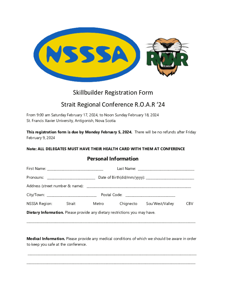 Register for the Strait Regional Conference R.O.A.R 2024. Submit your application by February 5, 2024, for an enriching experience at St. Francis Xavier University.
