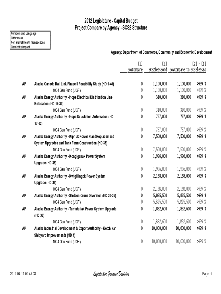 2012 Legislature Capital Budget