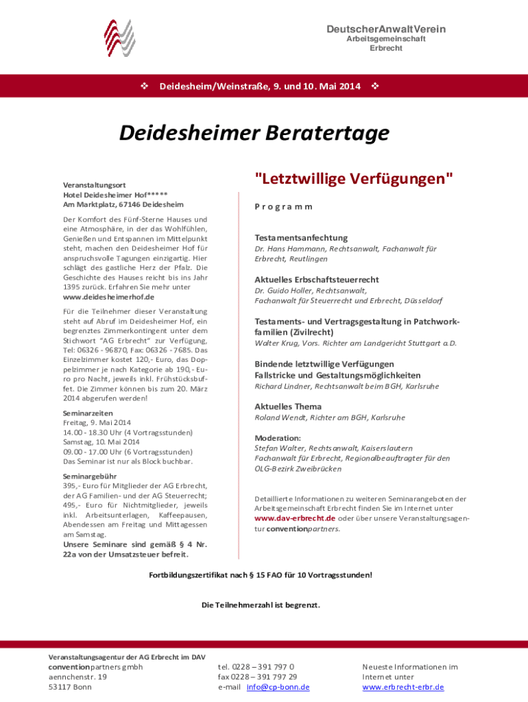 Holen Sie sich kostenlos Deidesheimer Beratertage ErbR-echt aktuell fr den ...