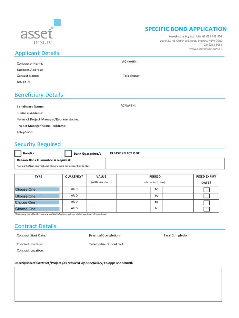 Get the free Specific Bond Application