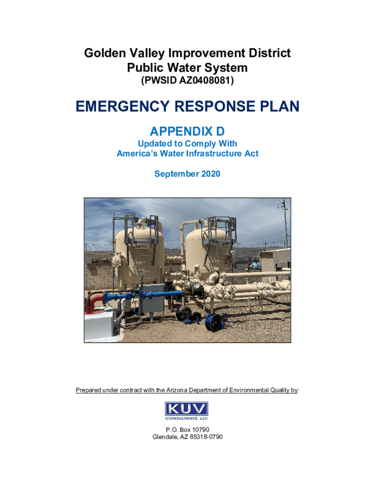 This comprehensive emergency response plan outlines specific guidelines for various emergencies affecting the Golden Valley water system, updated to comply with America\'s Water Infrastructure Act 2020.