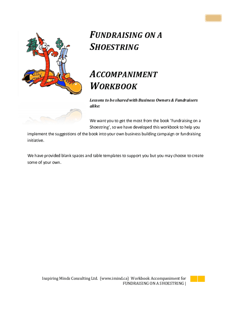 FUNDRAISING ON A SHOESTRING ACCOMPANIMENT WORKBOOK Lessons to be shared with Business Owners & Fundraisers alike:We want you to get the most from the book Fundraising on a Shoestring, so we have developed