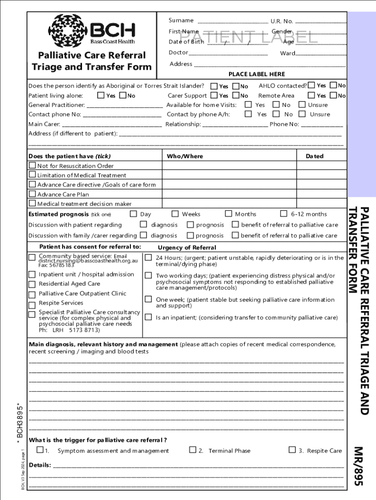 Surname. R. No. First NameGenderDate of Birth/Age/DoctorPalliative Care Referral