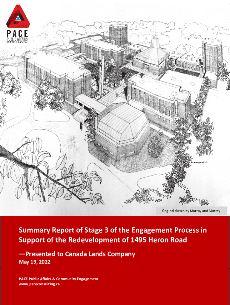 Original sketch by Murray and MurraySummary Report of Stage 3 of the Engagement Process in Support of the Redevelopment of 1495 Heron Road Presented to Canada Lands Company May 19, 2022 PACE Public