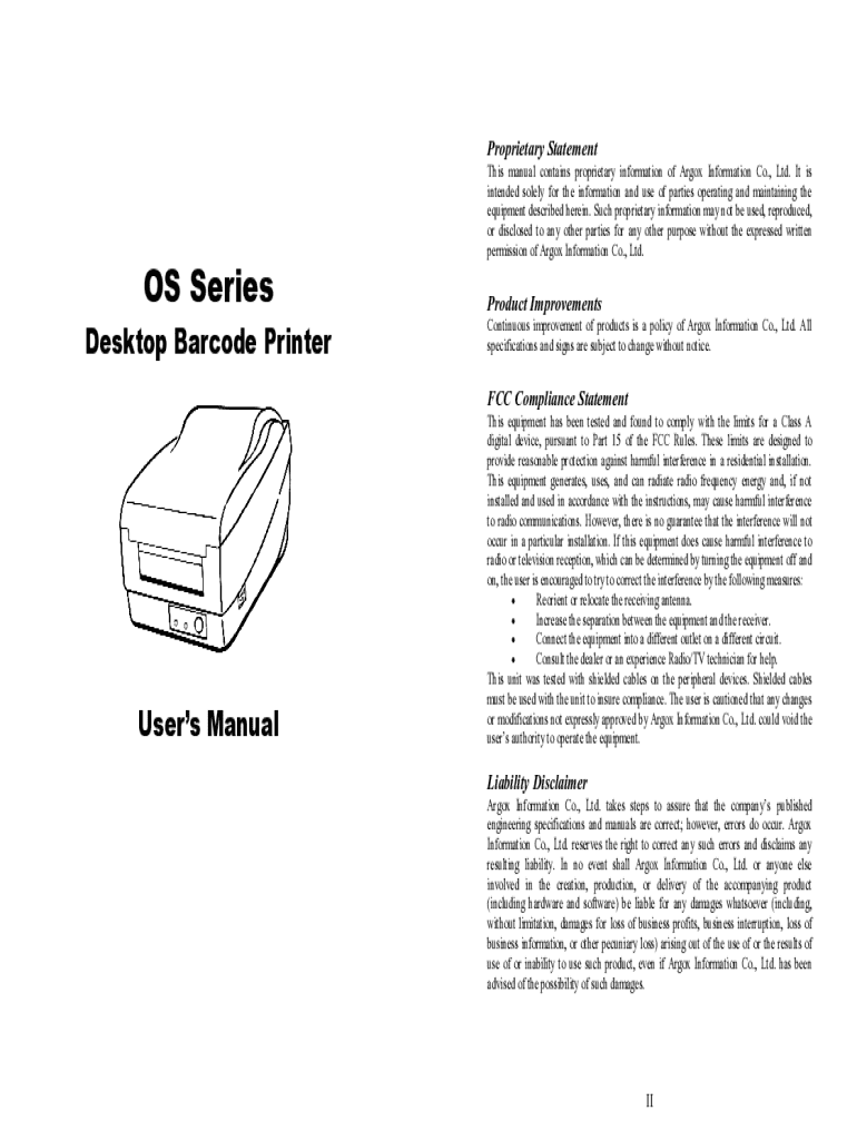 Proprietary Statement This manual contains proprietary information of Argox Information Co., Ltd. It is intended solely for the information and use of parties operating and maintaining the equipment