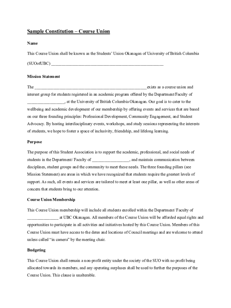 Get the free Sample ConstitutionCourse Union