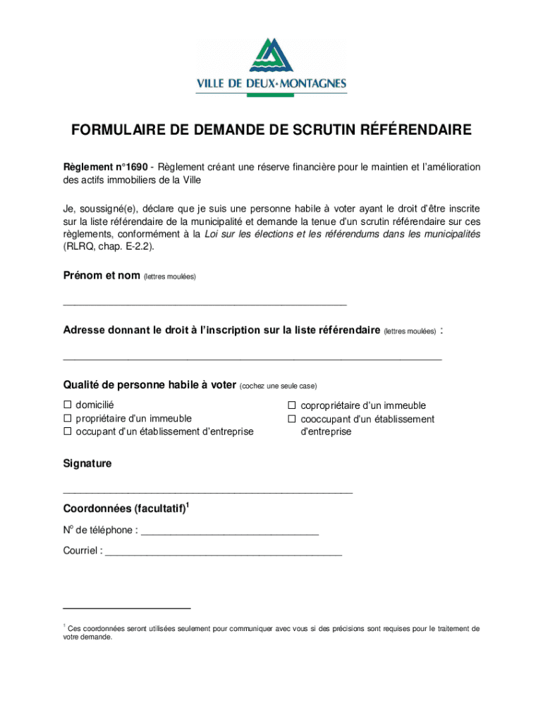 Obtenir le gratuit Formulaire de demande de scrutin rfrendaire - Ville de Deux ...