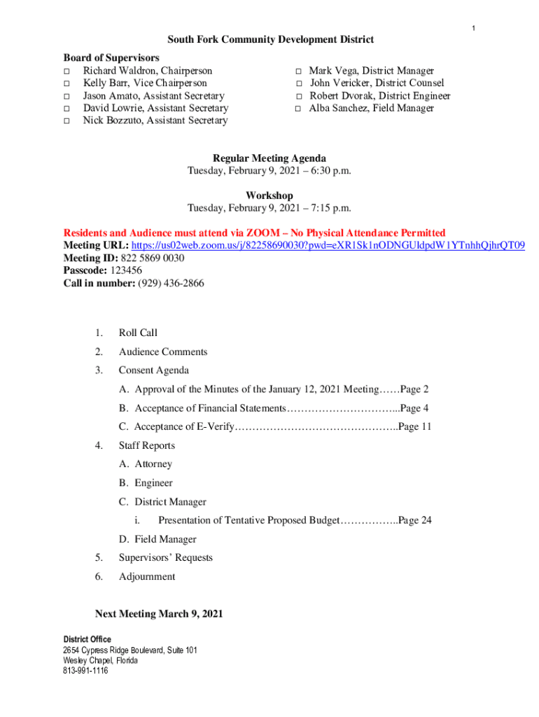 1South Fork Community Development District Board of Supervisors Richard Waldron, Chairperson Kelly Barr, Vice Chairperson Jason Amato, Assistant Secretary David Lowrie, Assistant Secretary Nick Bozzuto,