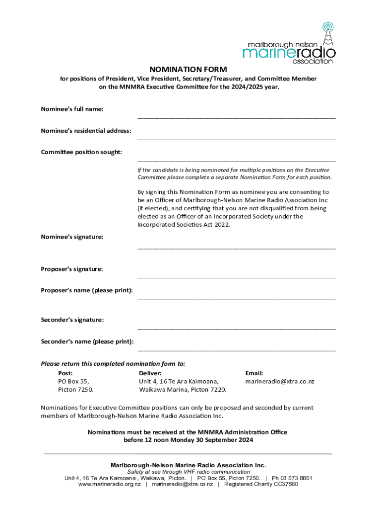 Complete the NMRA Nomination Form to propose candidates for President, Vice President, Secretary/Treasurer, and Committee Member for 2024/2025.