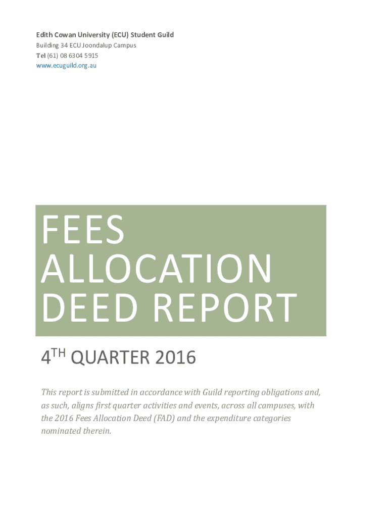 Edith Conan University (ECU) Student Guild Building 34 ECU Joondalup Campus Tel (61) 08 6304 5915 www.ecuguild.org.auFEES ALLOCATION DEED REPORT 4TH QUARTER 2016 This report is submitted in accordance