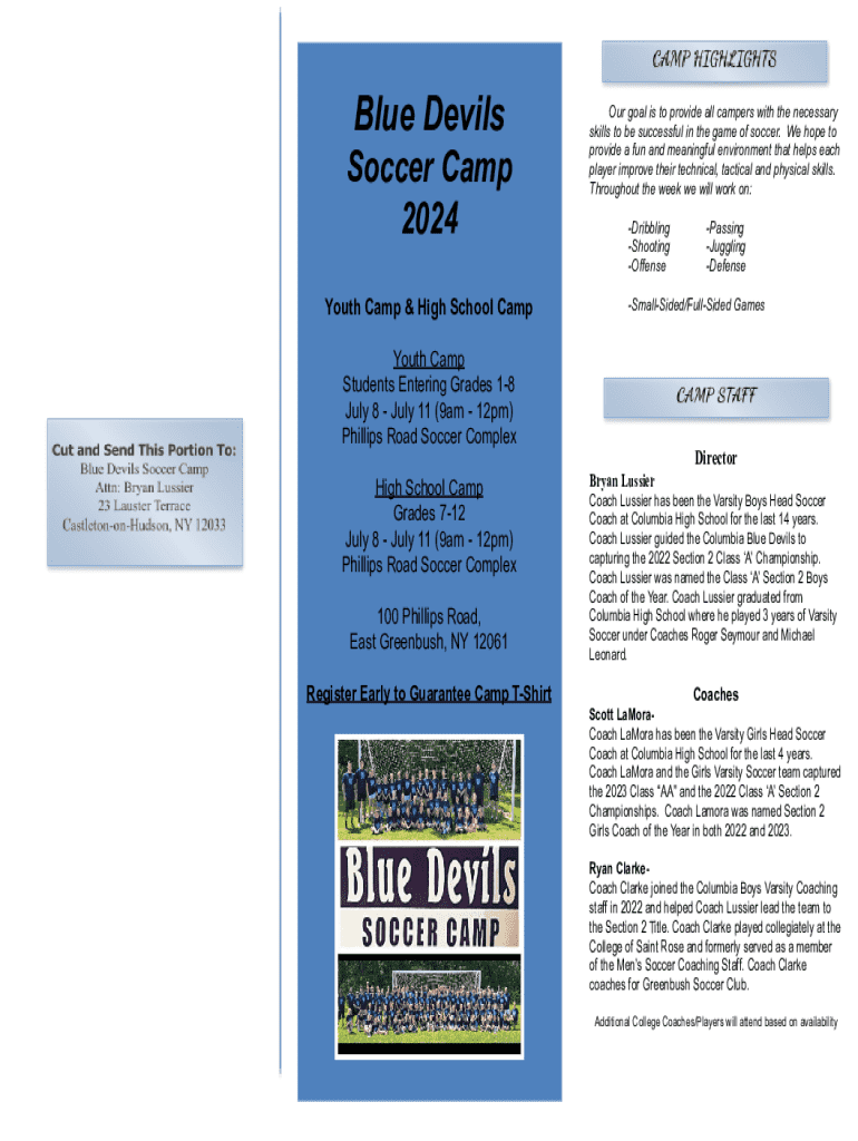 Blue Devils Soccer Camp 2024 Youth Camp & High School CampOur goal is to provide all campers with the necessary skills to be successful in the game of soccer. We hope to provide a fun and meaningful