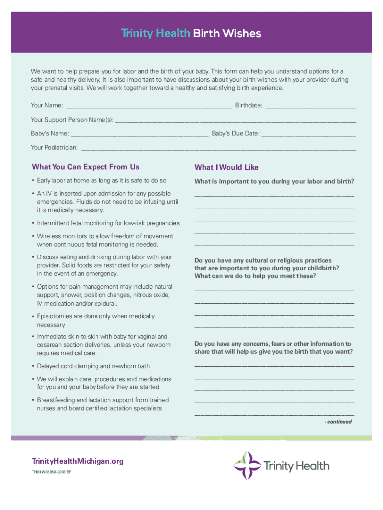 How to fill out trinity health birth wishes?