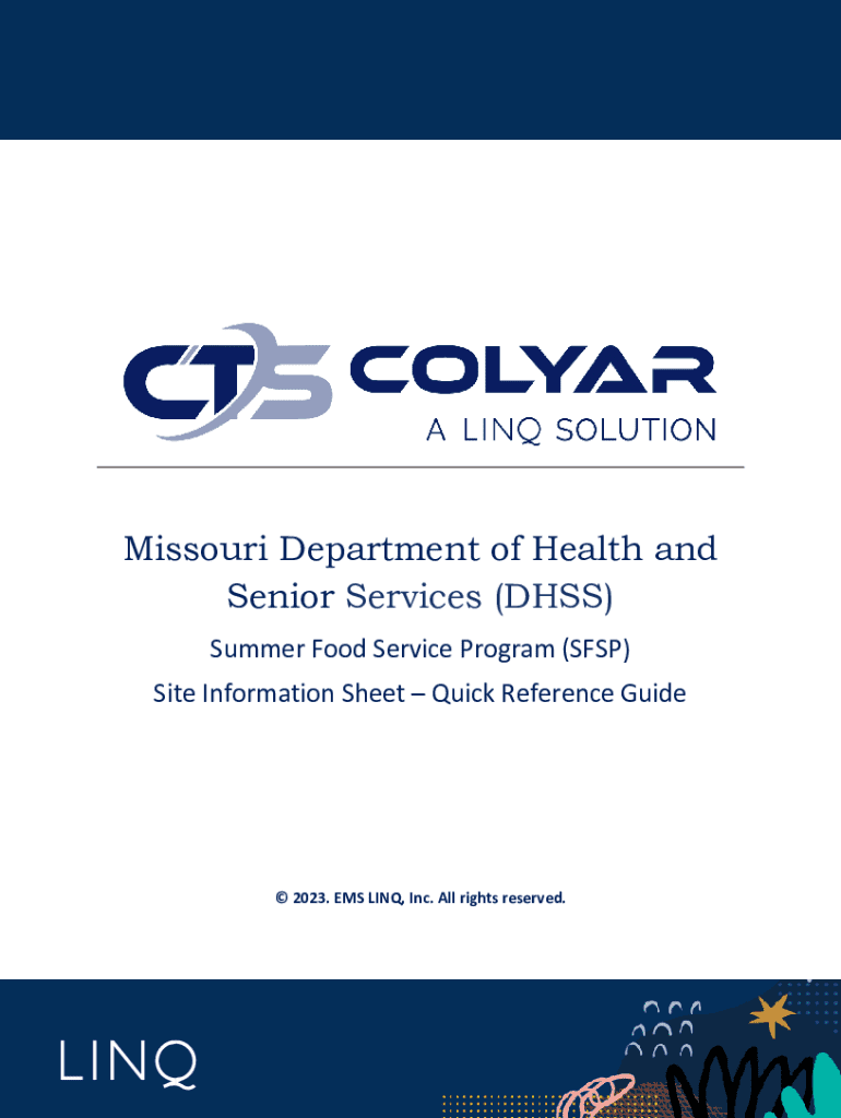 Missouri Department of Health and Senior Services (DHSS) Summer Food Service Program (SFSP) Site Information Sheet Quick Reference Guide 2023. EMS LINQ, Inc. All rights reserved.SFSP Site Info Sheet