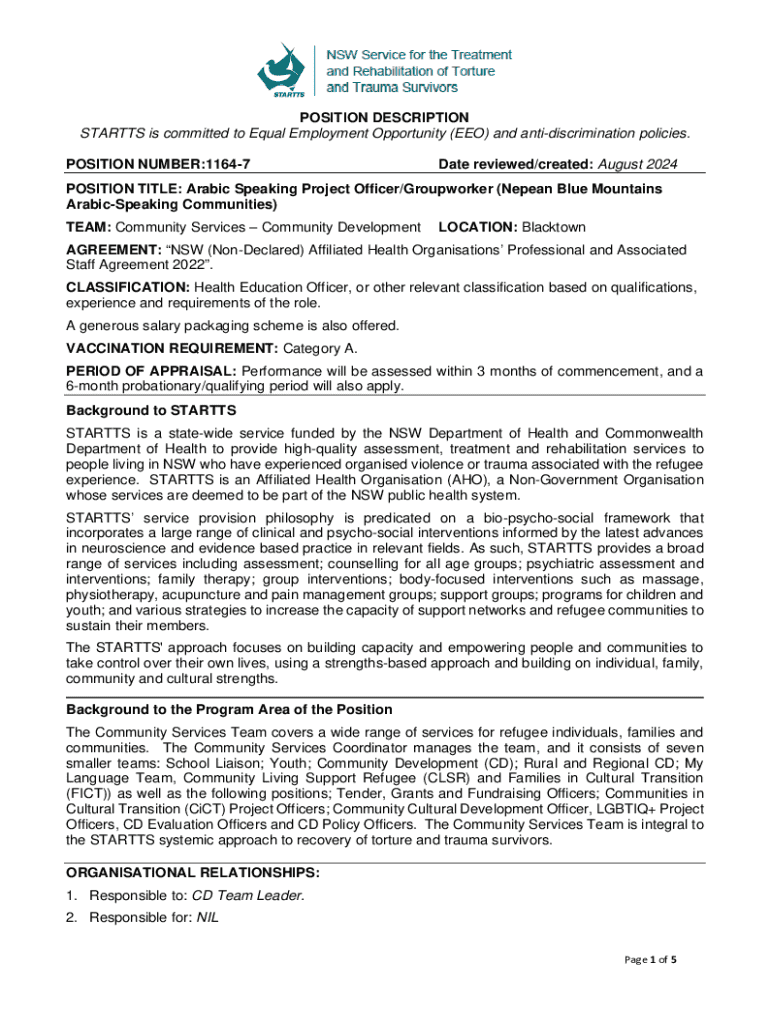 Get the free Arabic Speaking Project Officer/groupworker Position Description