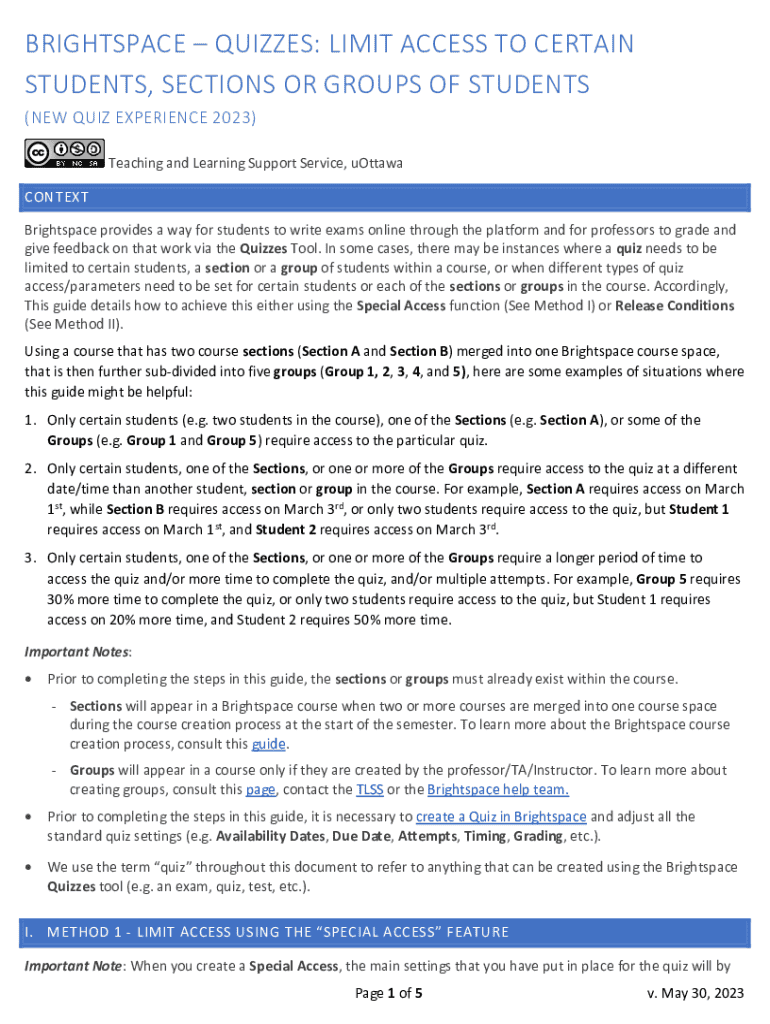Edit your brightspace quizzes access guide form online