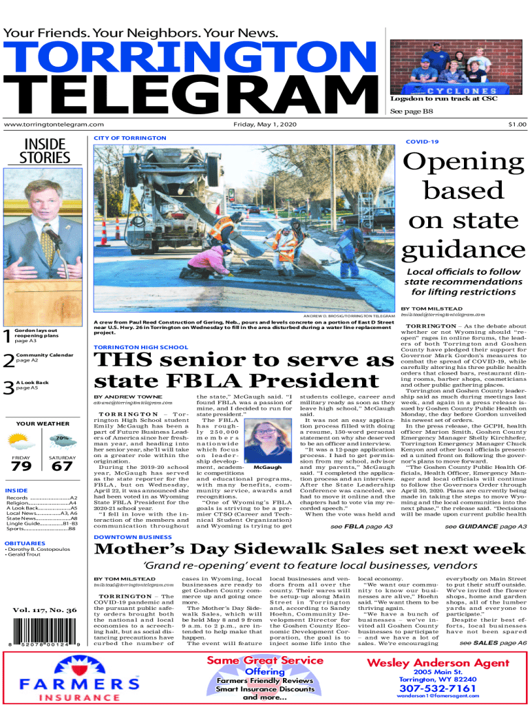 STORIESLogsdon to run track at Scree page B8Friday, May 1, $20201.00CITY OF TORRINGTONCOVID19Opening