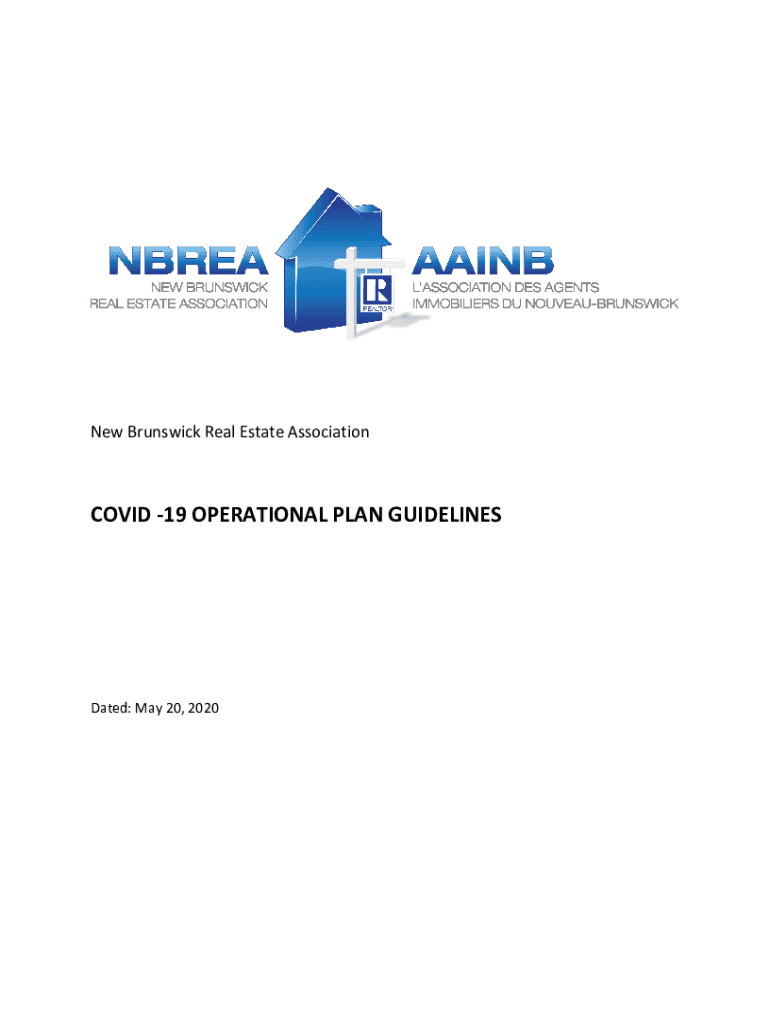 New Brunswick Real Estate AssociationCOVID 19 OPERATIONAL PLAN GUIDELINESDated: May 20, 2020DISCLAIMER In keeping with the New Brunswick Real Estate Associations (NBREA) objectives, which include