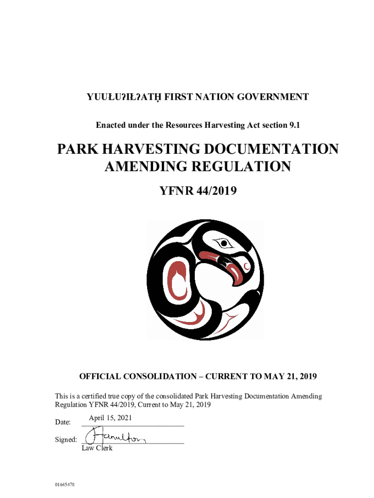 Enacted under the Resources Harvesting Act section 9.1PARK HARVESTING DOCUMENTATION