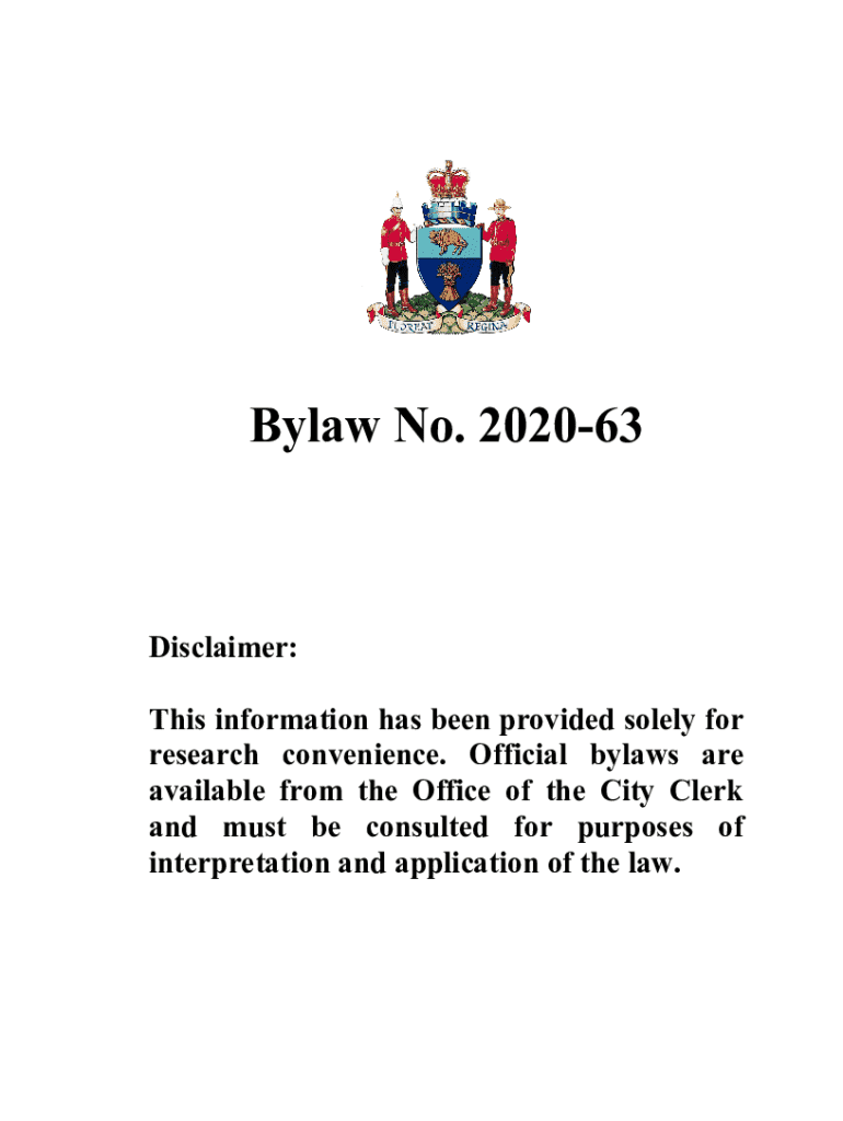 Bylaw No. 202063Disclaimer: This information has been provided solely for research convenience. Official bylaws are available from the Office of the City Clerk and must be consulted for purposes of