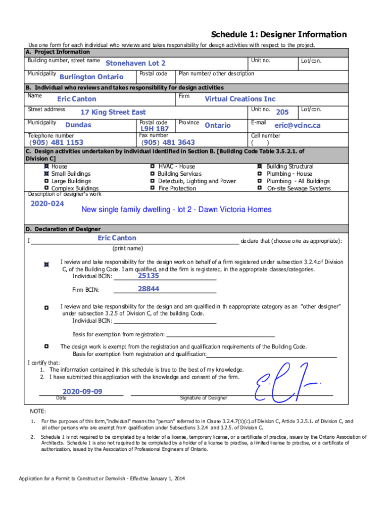 Schedule 1: Designer Information