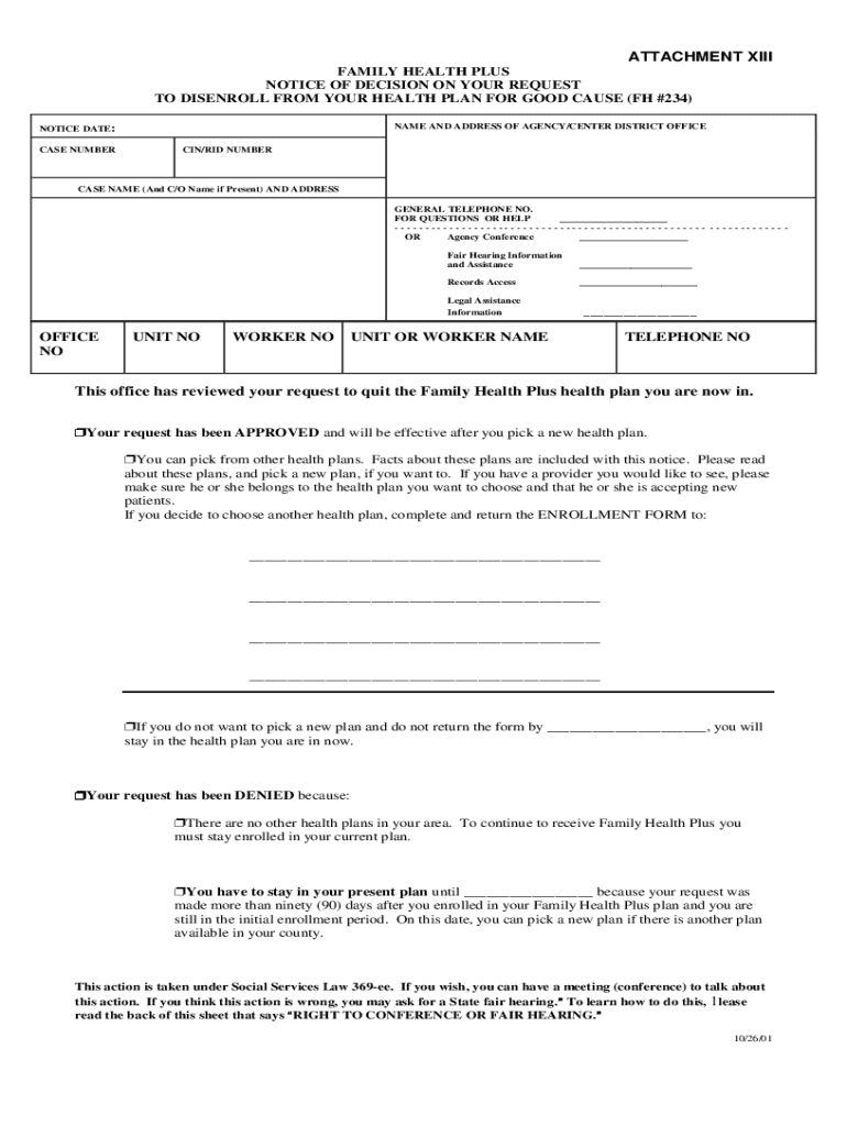 Family Health Plus Disenrollment is not the form you're looking for?Search for another form here.