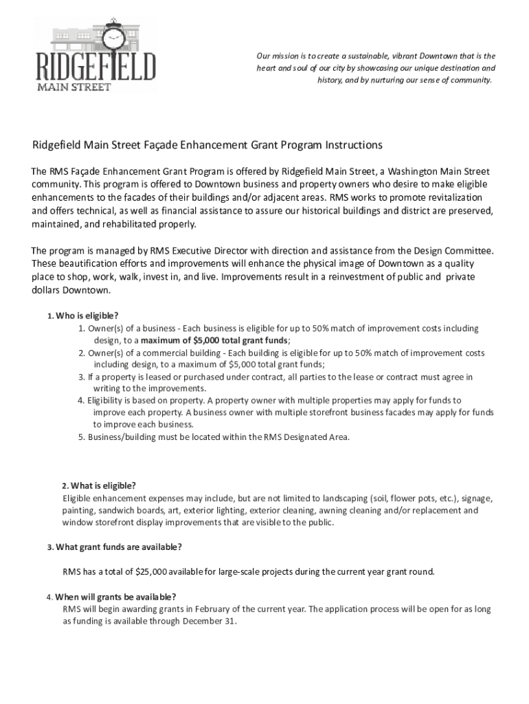 Get the free Ridgefield Main Street Façade Enhancement Grant Program Instructions