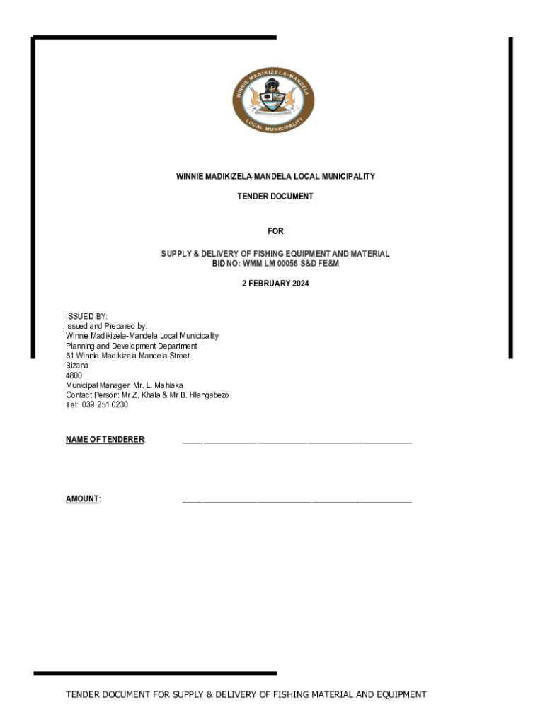 SUPPLY & DELIVERY OF FISHING EQUIPMENT AND MATERIAL
