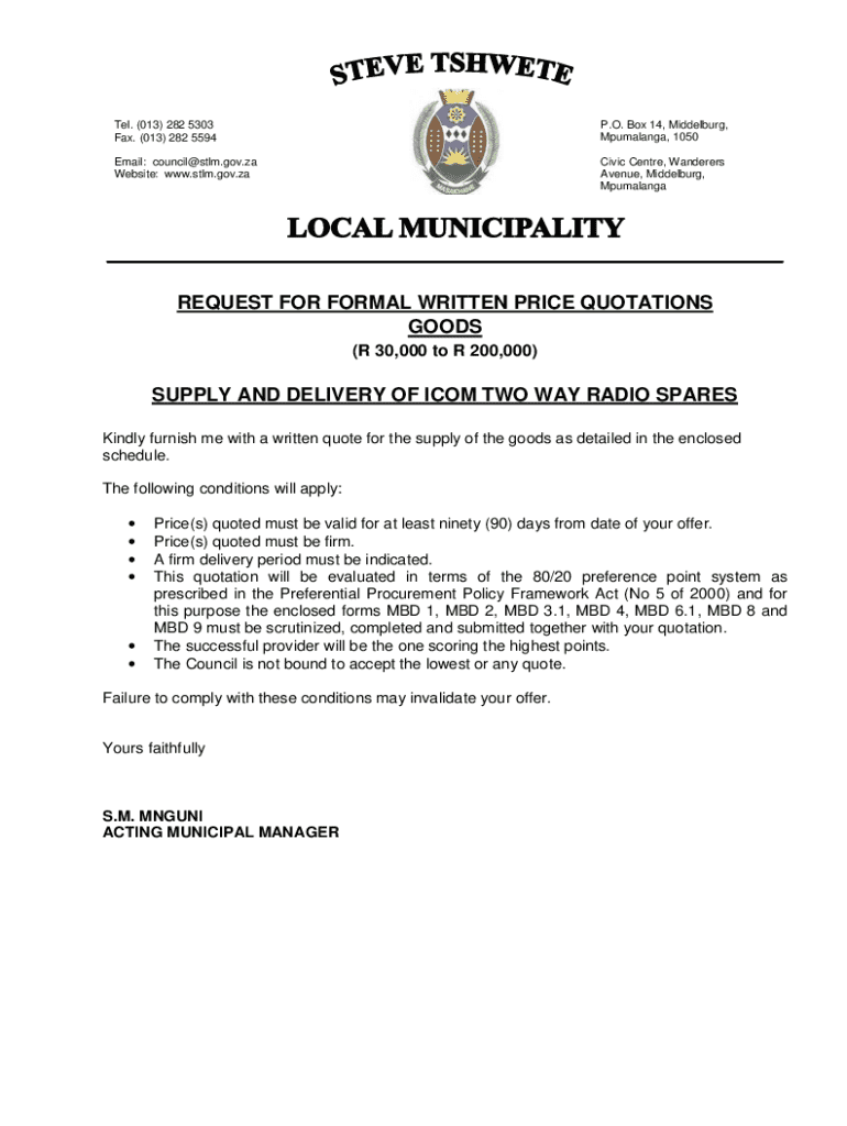 Tel. (013) 282 5303 Fax. (013) 282 5594P.O. Box 14, Middelburg, Mpumalanga, 1050Email: council@stlm.gov.za Website: www.stlm.gov.zaCivic Centre, Wanderers Avenue, Middelburg, Mpumalanga___ REQUEST