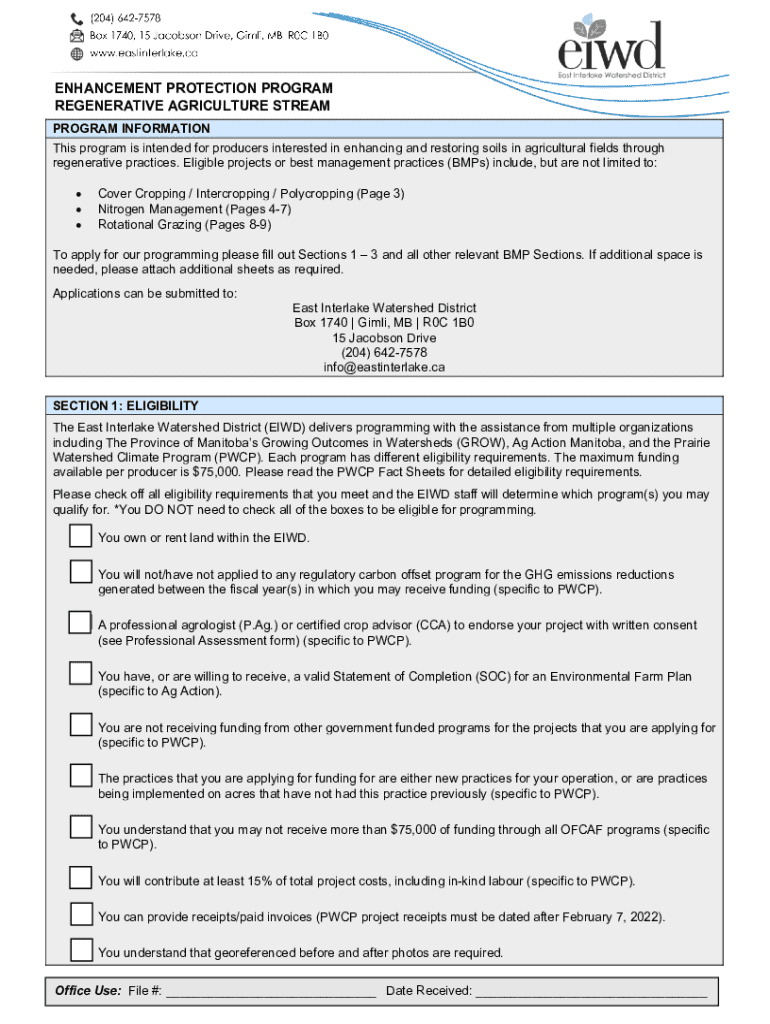 ENHANCEMENT PROTECTION PROGRAM REGENERATIVE AGRICULTURE STREAM PROGRAM INFORMATION This program is intended for producers interested in enhancing and restoring soils in agricultural fields through