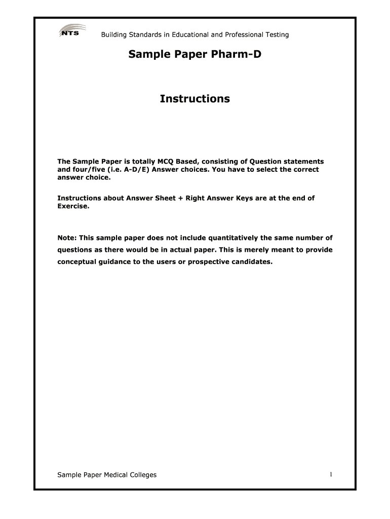 Get the free Sample Paper Pharm - D Admissions-2014