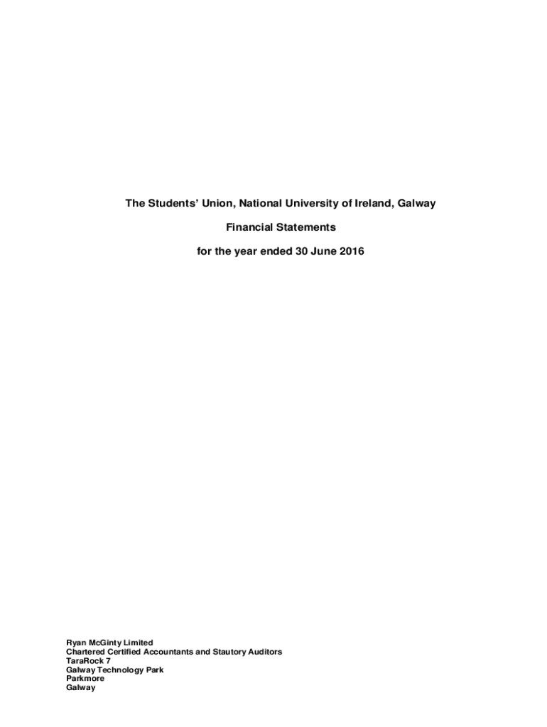 This document presents the Financial Statements for the Students’ Union at NUI Galway for the year ended 30 June 2016, detailing their income, expenditure, and overall financial performance.
