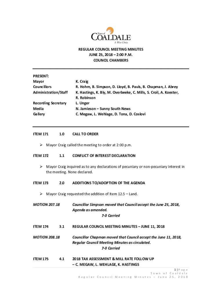 REGULAR COUNCIL MEETING MINUTES