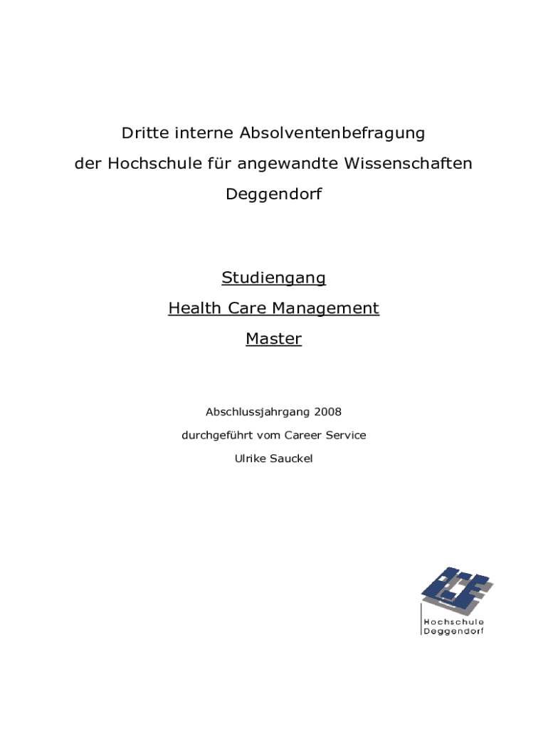 Written Internet Absolventenbefragung her Hochschule for angewandte Wissenschaften DeggendorfStudiengang Health Care Management MasterAbschlussjahrgang 2008 durchgefhrt com Career Service Ulrike SauckelInhaltsverzeichnis