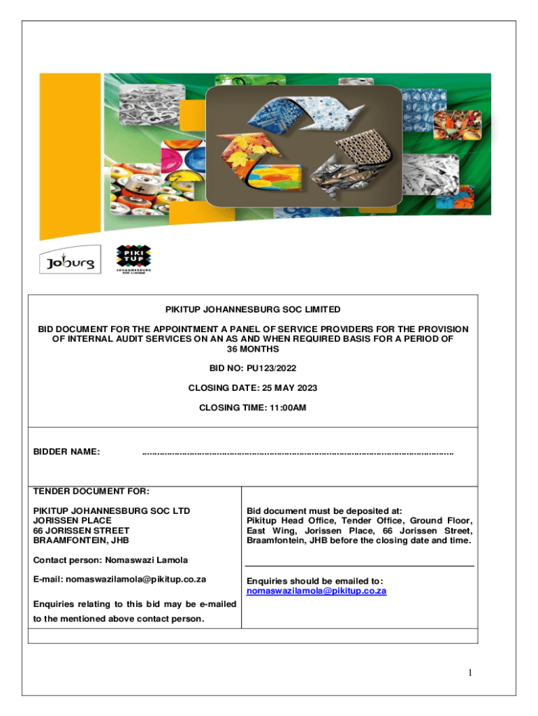 BID DOCUMENT FOR THE APPOINTMENT A PANEL OF SERVICE PROVIDERS FOR THE PROVISION
